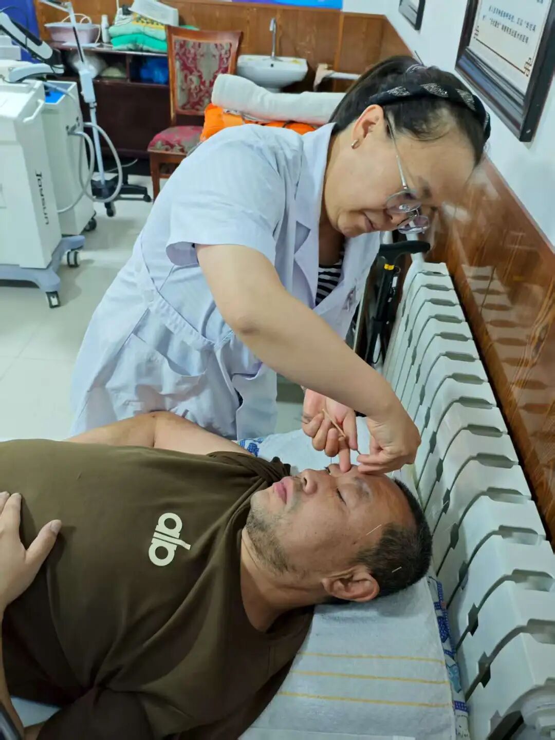 “杨主任,我这腰腿疼好多年了,吃了不少药都不管用,您能帮我看看吗?”在中医科诊室,一位患者握着杨瑞云副主任医师的手,满是期待。作为中医领域的骨干,杨瑞云深知传统医学在基层的需求与价值。帮扶期间,她重点推广醒脑开窍针法、中药泡洗等中医适宜技术,针对颈腰腿痛、中风后遗症等常见疾病开展诊疗,用“一根针、一碗药”为患者缓解病痛。为了让中医技术在基层落地生根,她开设《中医适宜技术培训班》,从穴位定位、针刺手法,到中药配伍、泡洗方剂的熬制方法,她耐心讲解、反复示范,甚至亲自带教学员为患者操作。一位中风后遗症患者经她针灸治疗两周后,手指活动能力明显改善,家属特意送来锦旗:“中医技术真神奇,兴安盟医生暖人心!”而她开展的中医科普小课堂,也吸引了众多基层医生参与,让中医诊疗理念和技术逐渐融入根河市的日常医疗服务中。
