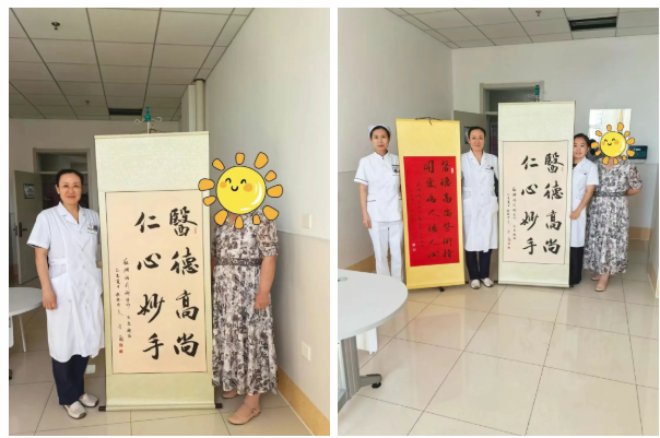 出院之际,韩女士紧紧握住医护人员的手,动情地说:“真的特别感谢大家!不仅医术高超,让我能安心接受治疗,更在我最难熬的时候给了我太多心理支持,这份温暖我永远记在心里。” 为表达这份深厚的感激之情,韩女士的爱人特意亲笔书写了一幅书法作品,于近日送到杨莉娜主任的门诊。作品以 “仁心厚德、妙手诚言” 八个字,凝练地表达了对我院妇科医护人员专业素养与人文关怀的高度赞扬,既是对医护人员职业奉献的肯定,也承载着患者家属对医院医疗服务的认可,让全体妇科医护人员倍感温暖与鼓舞。
