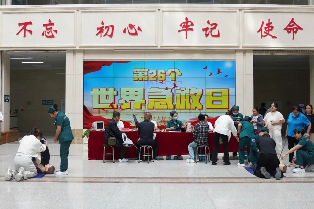 九月微风送爽,阳光和煦,在这个初秋时节,我们即将迎来第26个"世界急救日"。为提高公众急救意识,普及应急救护知识,9月12日,兴安盟人民医院在医院大厅开展了一场规模盛大、内容丰富的义诊活动。急诊科主任王艳霞、刘军林,医生刘佳伟,护士长雷姝娟、马丽华等医护团队亲临现场,为市民提供专业诊疗服务和急救技能指导。
