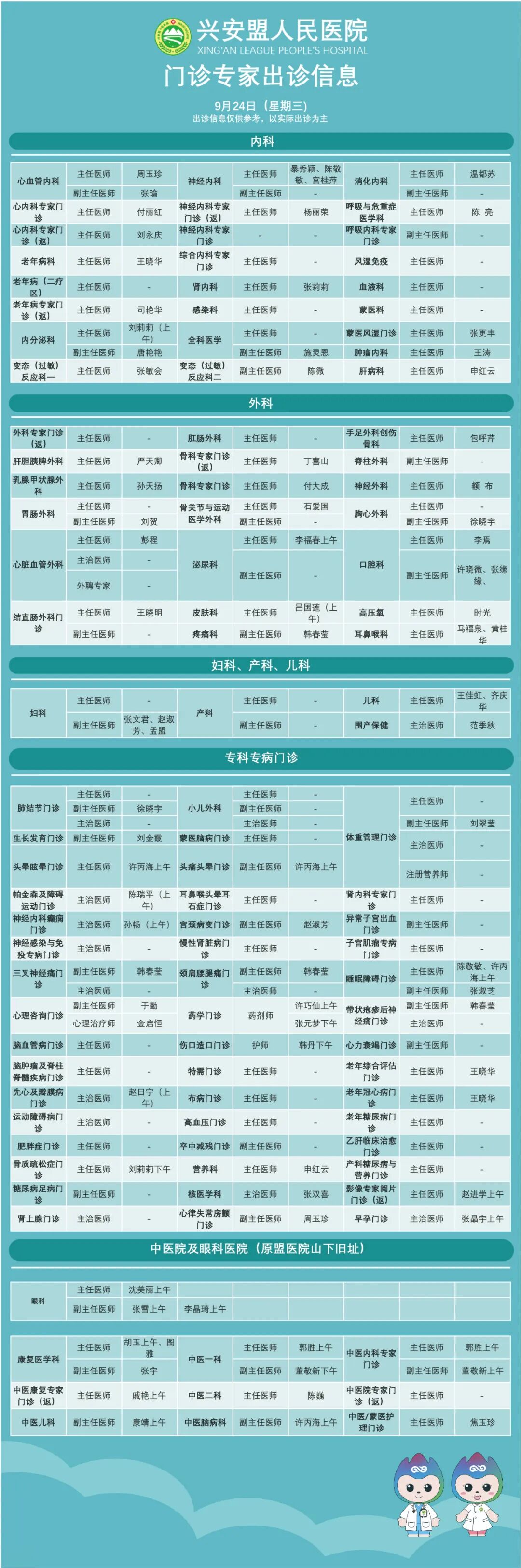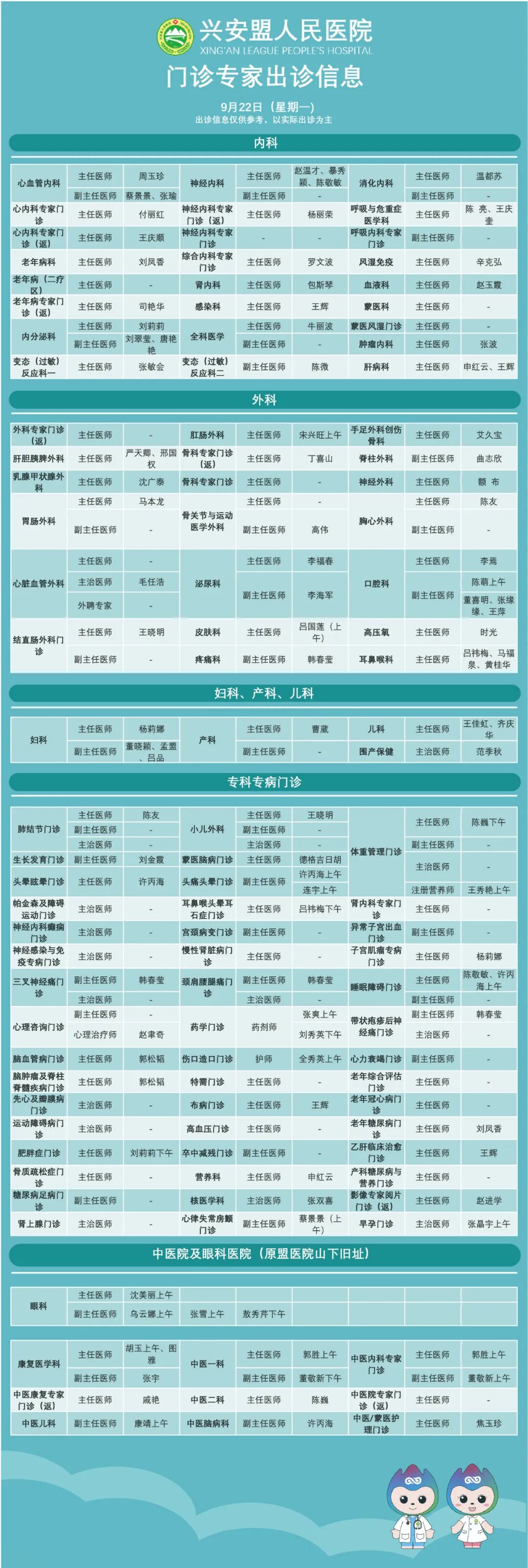 『出诊信息』兴安盟人民医院9月22日-24日出诊信息