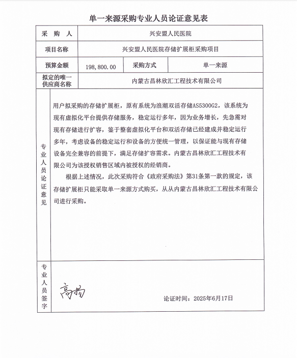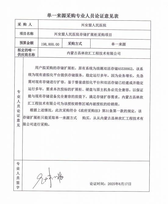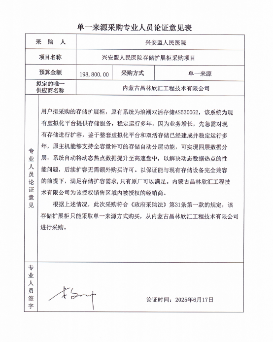 采用单一来源采购方式的原因及说明:原有系统为浪潮双活储存AS5300G2。鉴于整套虚拟化平台和双活存储已经建成并稳定运行多年,本次采购设备与原主机务必完全兼容以保证能扩容需求,故采用单一来源方式进行采购。