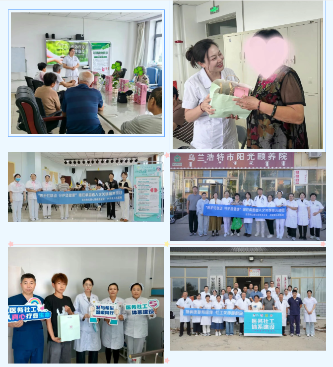 多项服务精准对接患者需求,实现温暖覆盖。累计完成小组工作6次、特色活动2次,通过专业社工引导,搭建起患者间的交流互助平台,增强康复信心,实现关怀与健康的双重传递。成功探访10名贫困患者,切实缓解他们的就医压力,用实际行动为患者筑起“健康保障线”。累计完成10次社区工作,通过健康科普、义诊咨询等形式,将专业医疗服务从医院延伸至居民家门口,有效提升社区慢性病患者及居民的健康认知与自我管理能力。完成4次兴安盟医务社工服务拓展培训,进一步提高全盟医务社工的服务能力,为患者提供更全面的支持。项目还得到了学习强国平台、医院公众号宣传报道,进一步扩大了慢性病患者人文关怀服务的社会影响力。