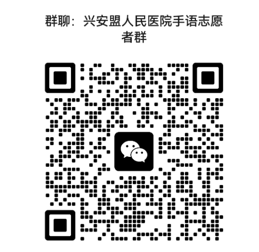 4.报名长期有效,欢迎积极参与,如群聊二维码过期欢迎拨打电话咨询。您的每一次手语翻译,都能帮听障患者少一分迷茫、多一分安心;您的每一次耐心陪伴,都能让医疗服务多一分温度。期待心怀善意的您加入,与我们共同为听障群体打造更包容、更便捷的就医环境!