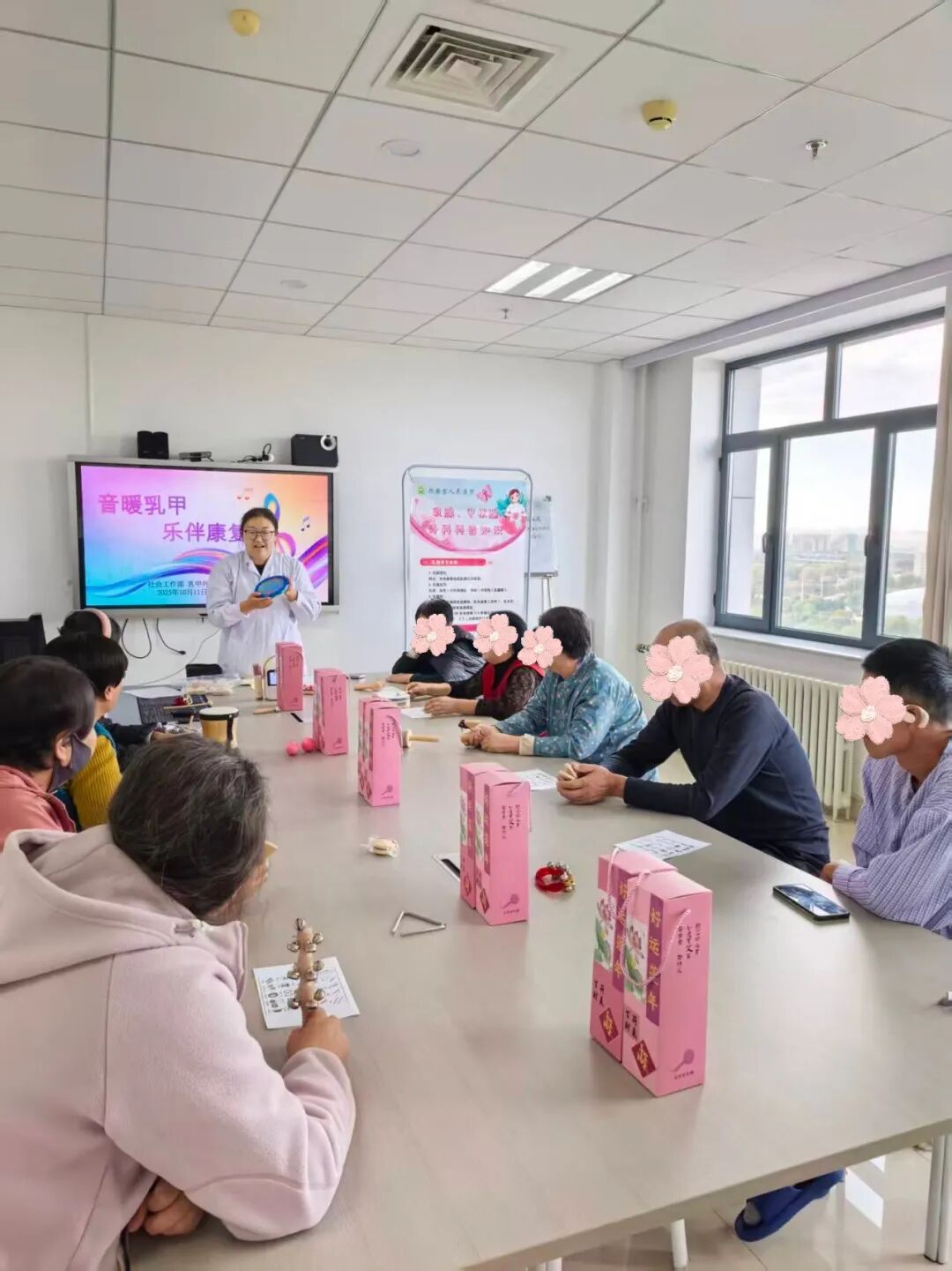 10月11日,在乳甲外科病房的示教室内,阵阵轻快的节奏与欢声笑语交织,一场以“音暖乳甲 乐伴幸福”为主题的音乐疗愈小组活动正在温馨上演。医院社会工作部联合乳甲外科、介入科,为术后恢复期患者及慢病管理人群,带来了一场兼具放松、疗愈与健康关怀的特别体验。