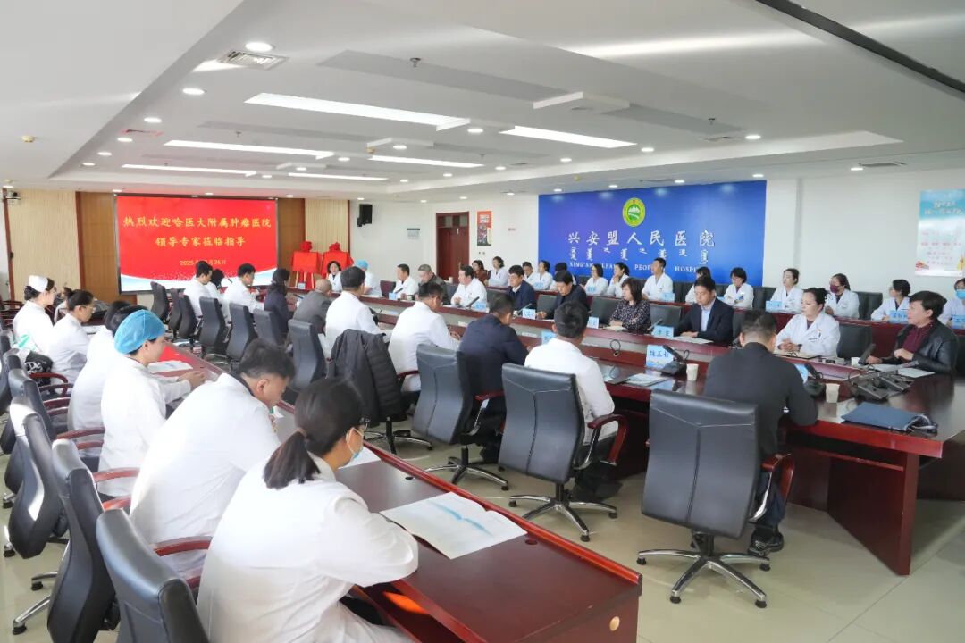 揭牌仪式上,哈尔滨医科大学附属肿瘤医院院长邰升,副院长董梅,专家团成员及兴安盟卫健委副主任徐志新,兴安盟人民医院党委书记吴喜,副院长艾英风,总会计师王丽霞,副院长余俊,相关科室负责人出席会议。会议由兴安盟人民医院副院长周智勇主持。