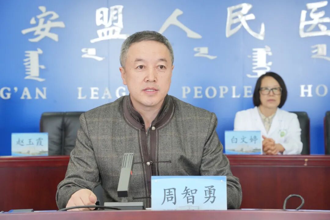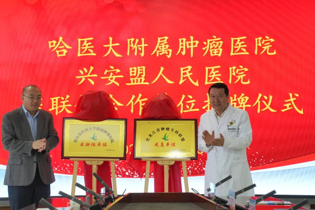 哈医大附属肿瘤医院院长邰升在讲话中指出,作为黑龙江省肿瘤防治核心机构,哈医大肿瘤医院始终以推动区域肿瘤诊疗水平整体提升为己任,而与兴安盟人民医院的医联体合作,是双方期待已久的战略对接。希望通过此次揭牌,双方建立 “点对点” 精准帮扶机制,在肿瘤专科技术、人才培养、科研项目等方面提供全力支持,兴安盟人民医院作为区域综合性医院,发挥常见病诊疗、多学科协作等方面的优势,共同为肿瘤患者提供 “全周期健康管理” 支撑,最终实现医联体合作成效,共同推动肿瘤防治事业高质量发展。