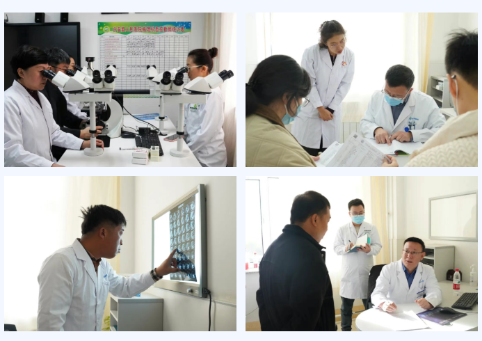 揭牌仪式后,来自哈医大附属肿瘤医院病理科、结直肠外科、消化内科、血液淋巴内科、乳腺外科、超声科、胃肠外科专家在相关科室负责人的陪同下,深入医院门诊、住院部开展大型义诊与疑难病例查房活动。在义诊现场,专家们耐心接待每一位患者,仔细查看病历资料、分析检查报告,针对肿瘤术后康复、化疗方案调整、靶向药物使用等问题,为患者制定个性化诊疗方案;在查房过程中,专家们与医院医护人员围绕疑难病例展开深入讨论,不仅详细解读最新诊疗指南,更分享了肿瘤精准治疗、微创技术应用等前沿经验,为本地医护人员带来零距离的学术指导。此次义诊共服务患者50余人次,其中多名长期受肿瘤困扰的患者通过专家指导明确了后续治疗方向。