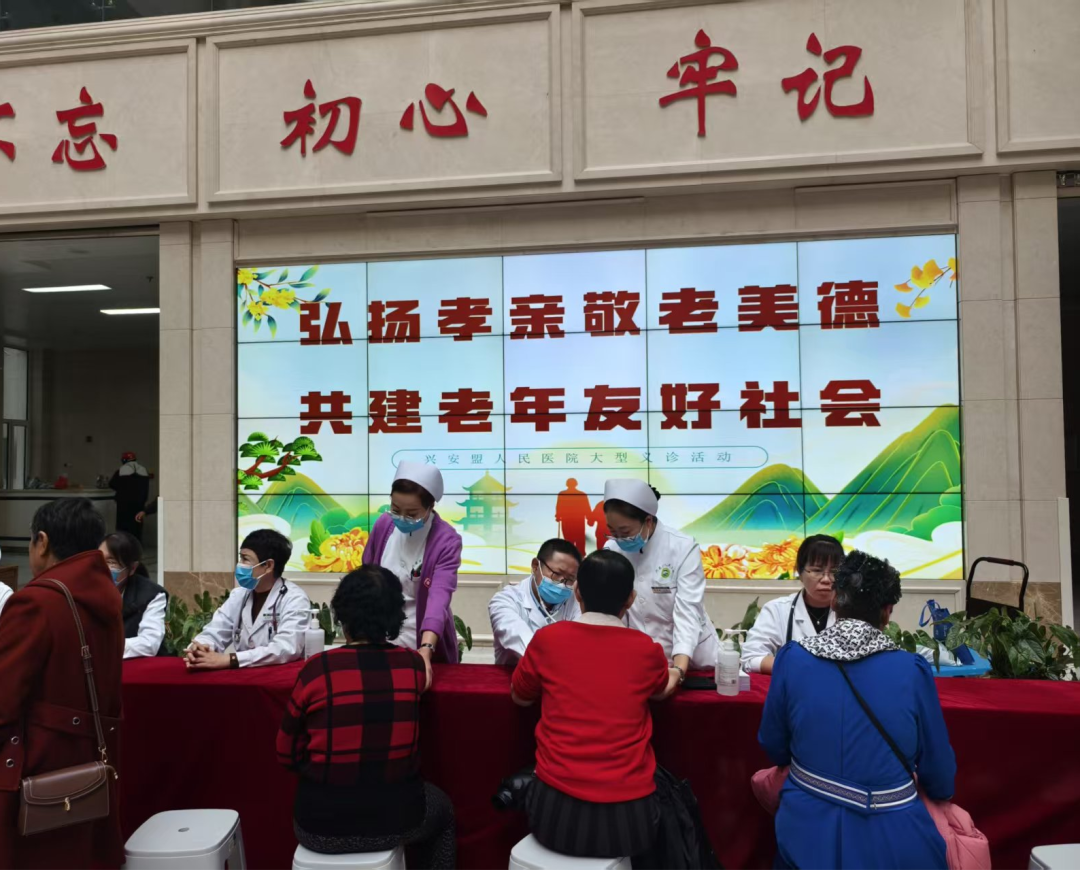 金菊送清芬,重九沐暖阳。在重阳佳节来临之际,为弘扬中华民族尊老敬老的传统美德,践行医疗服务机构的社会责任,10月29日,兴安盟人民医院老年病科,在医院门诊大楼成功举办“弘扬孝亲敬老美德,共建老年友好社会”大型公益义诊活动,将专业的医疗服务和温暖的节日问候送到长者身边。
