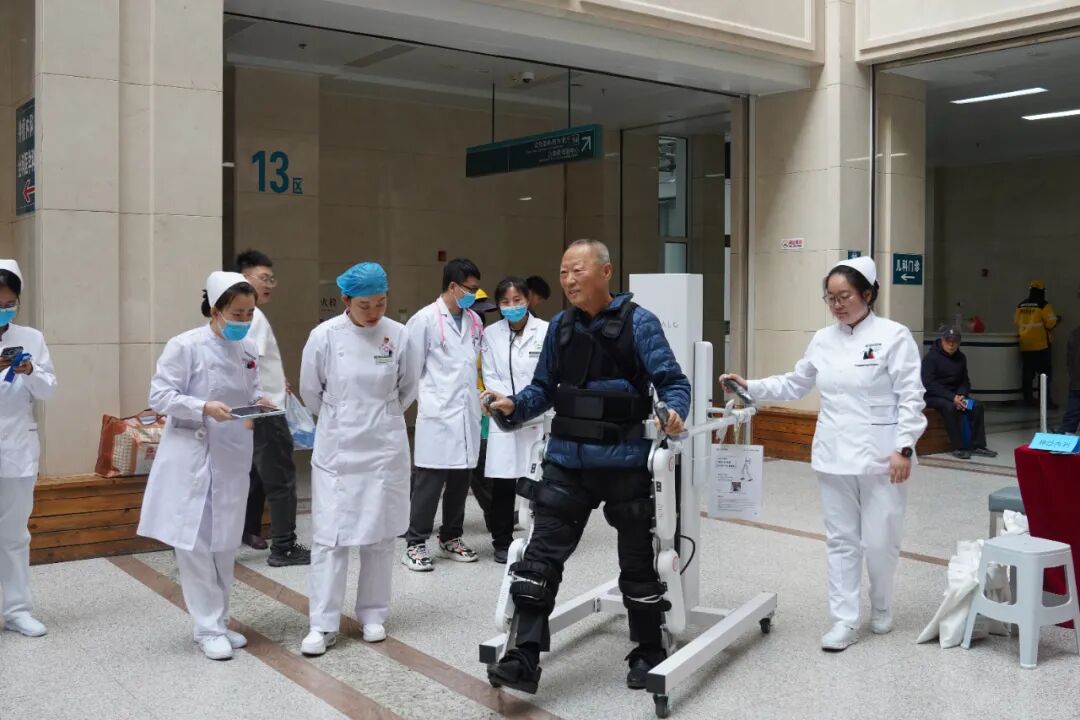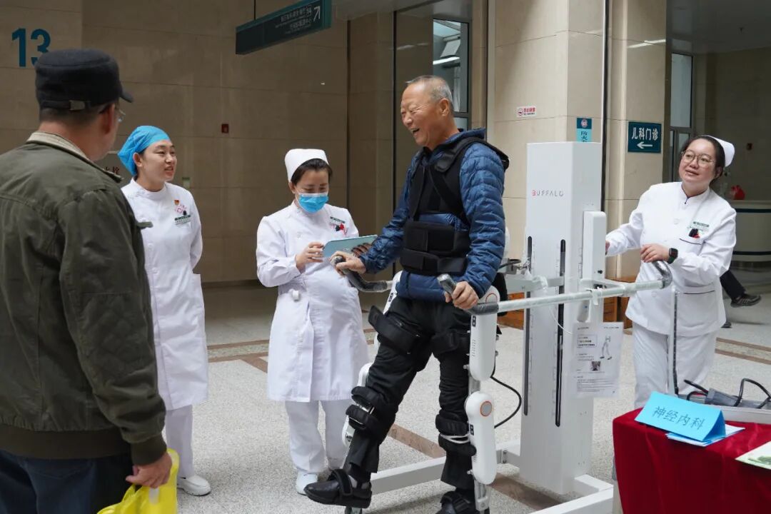 值得一提的是,卒中中心特别将外骨骼机器人搬到门诊大厅,为有需求的群众提供免费体验机会。不少群众在医护人员的指导下尝试使用,亲身感受科技发展为卒中康复治疗带来的新变化,现场反响热烈。