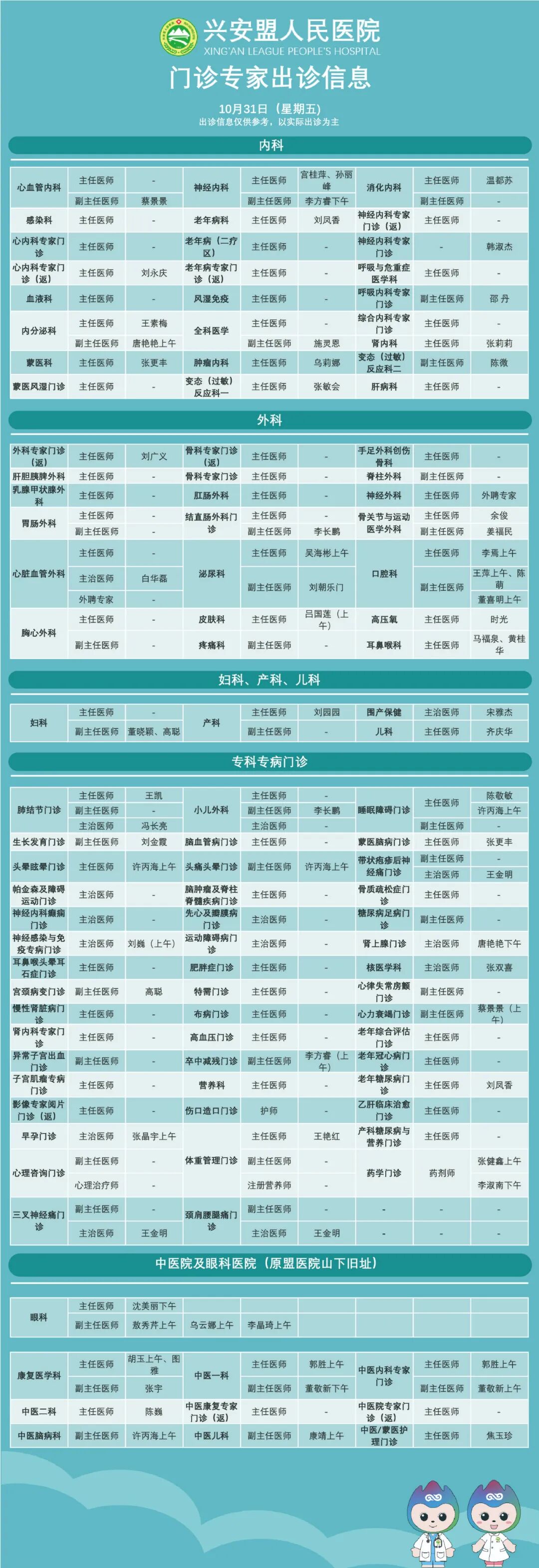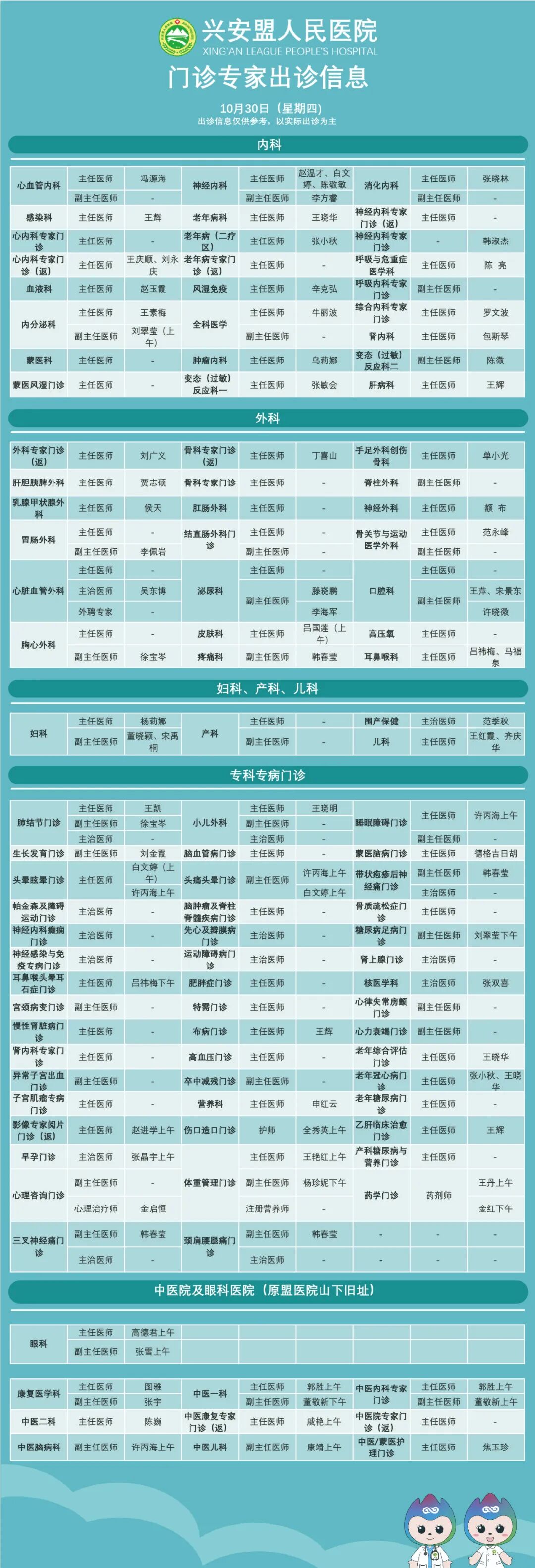 『出诊信息』兴安盟人民医院10月30日-31日出诊信息