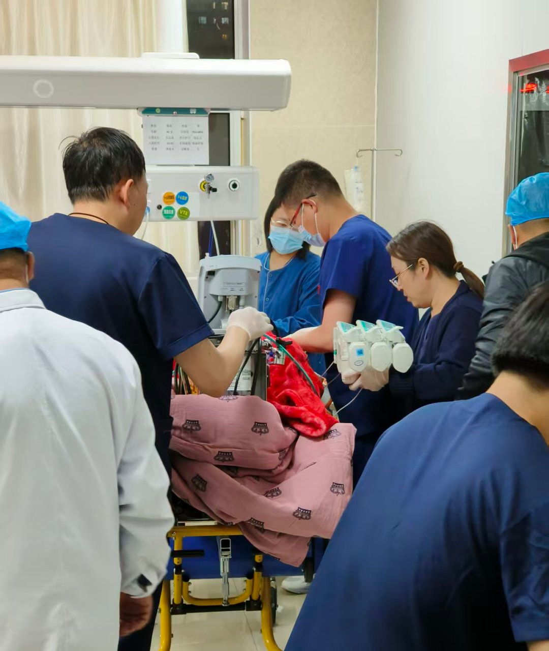 这是一场与死神的竞速。吉林大学第二医院的ECMO团队在接到求助后,毫不犹豫,携带设备火速驰援。在我院急诊EICU,两家医院的精英团队密切配合,穿刺、置管、装机、运行……所有操作一气呵成。