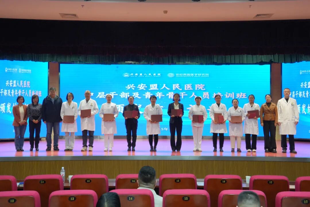 2025年11月5日,兴安盟人民医院举行“中层干部与青年骨干培训班”结业仪式。医院党委副书记、院长孙博,总会计师王丽霞,副院长周智勇以及北京大学医学人文学院副院长王岳,北京大学医院管理项目主任陈素英等出席并致辞,为学员颁发结业证书。
