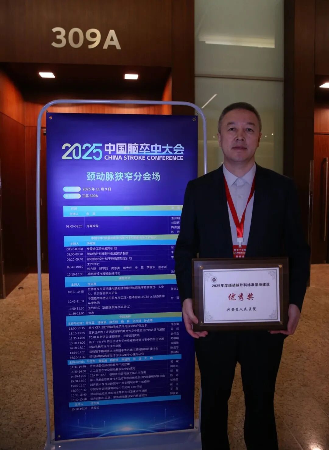 大会同期公布的专项表彰中,兴安盟人民医院血管外科凭借在缺血性卒中外科防治领域的规范化建设与卓越技术水平,荣获 “2025年度颈动脉外科标准基地建设优秀奖”。这一权威认证不仅是对医院颈动脉外科诊疗质量、教学培训及学科建设的全面肯定,更标志着该院在该领域的技术实力已成功跻身全国第一梯队,成为基层医院专科建设的标杆典范。