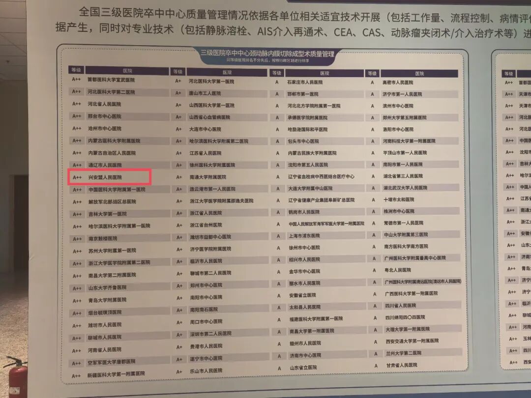 在大会发布的全国三级医院卒中中心质量管理榜单中,兴安盟人民医院交出了一份沉甸甸的“质量答卷”。该榜单基于适宜技术开展、流程控制、病历质量、随访管理等多维度客观数据评定,兴安盟人民医院核心技术表现尤为亮眼:“颈动脉内膜剥脱术(CEA)” 斩获最高“A++”评价,“静脉溶栓”技术获评“A+”等级,彰显了急性缺血性卒中超早期救治的高效性与规范性,标志着医院在卒中预防关键外科领域已达到全国顶尖水平,为区域群众提供了与国内一流水平接轨的医疗服务保障。