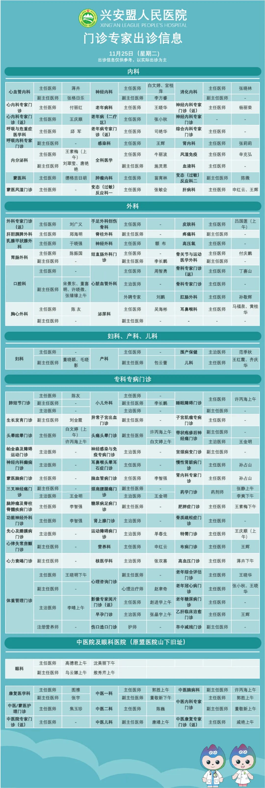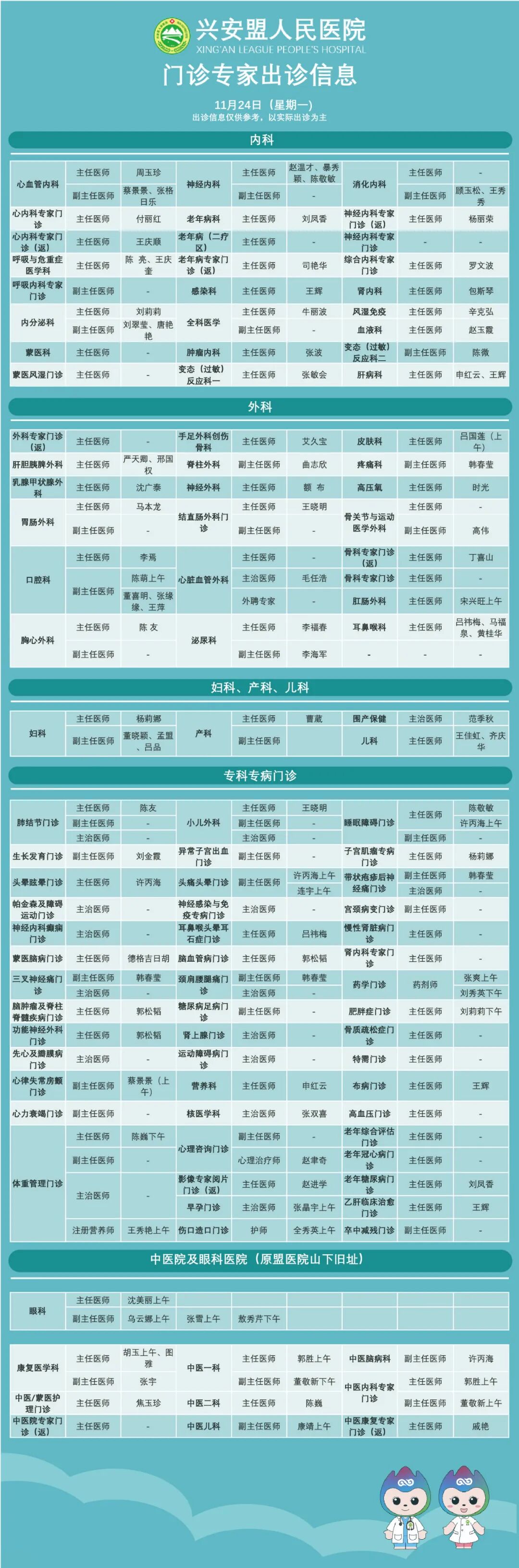 『出诊信息』兴安盟人民医院11月24 日-26日出诊信息