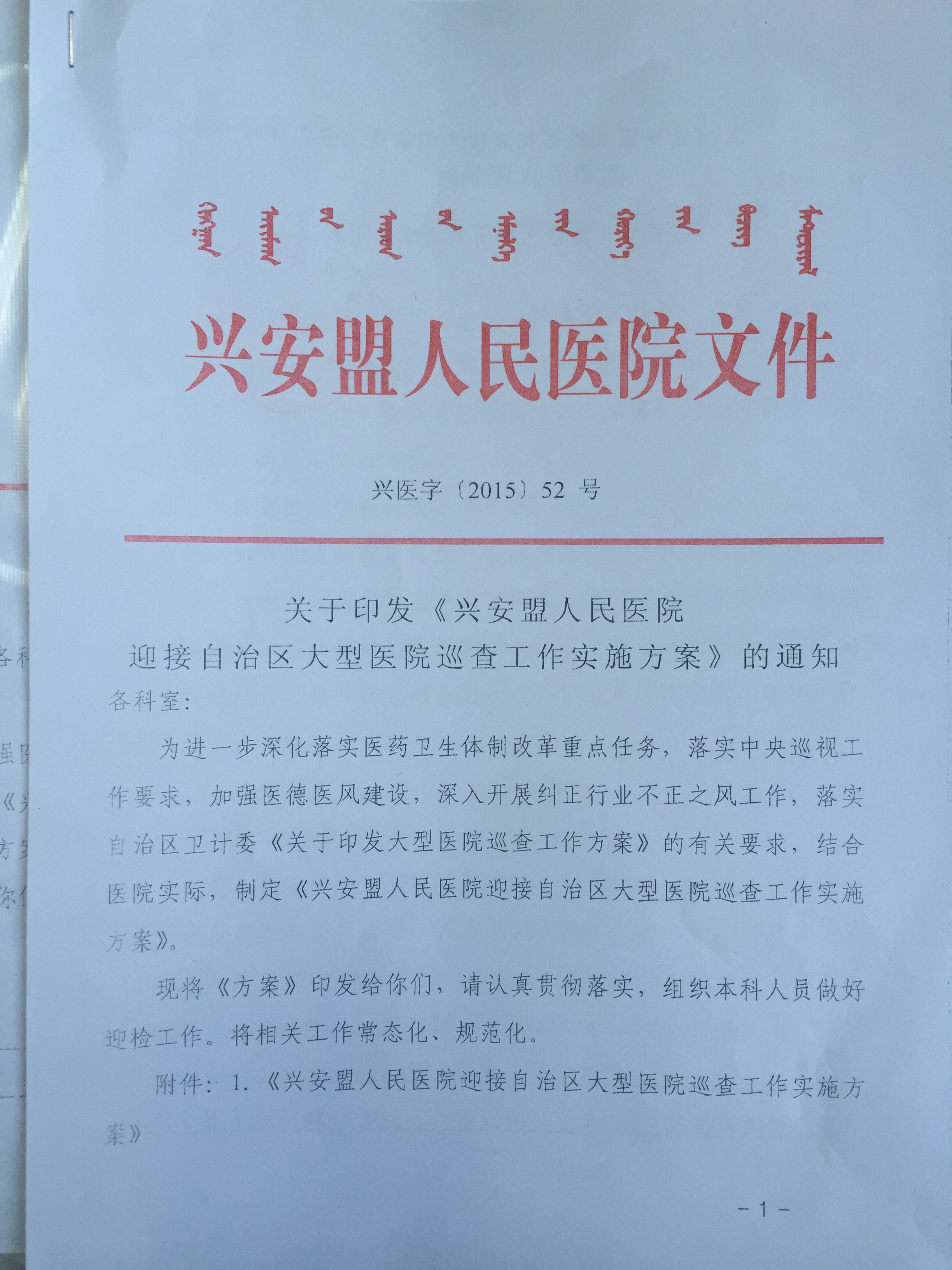 兴安盟人民医院迎接自治区大型医院巡查工作实施方案
