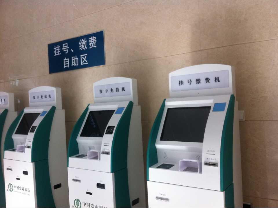 我院设立了自助挂号收费机,解决了患者在窗口挂号收费排长队的问题,缩短了患者挂号缴费的等候时间。该自助挂号机使用方法简单便捷,患者可按照提示轻松办理就诊卡、挂号、交费等业务;医院还开设了预约挂号窗口,患者可通过电话预约、微信预约、短信预约进行挂号,然后到挂号窗口取号,极大地简化了看病流程,节约了就医时间,同时也改善了就医环境;放射科、CT室门口分别安装了CT自助取片机、放射自助取片机,患者可自行打印胶片和取报告;在门诊药房门口,医院设立了自动处方打印机(自助药房取号机),简化了取药流程,方便了患者取药;在化验结果方面,医院设立了自助检验取单机,患者完成化验后可通过扫描回值单上的条码,在自助机上提取检验报告单;同时,患者还可以通过添加医院微信公众号,扫描回执单上二维码,随时随地查询检验结果;为了让更多的患者了解盟医院目前的发展状况,医院在住院部的每个楼层都设立了信息发布专栏,功能包括住院查询、医院介绍、科室介绍、物价查询、医院导航、满意度评价等;此外,医院还在二楼、三楼就诊位置设置了排号系统,挂号完成后信息会自动生成到排号系统中,护士可根据挂号情况给患者进行排号处理,缩短了患者排队等诊时间。