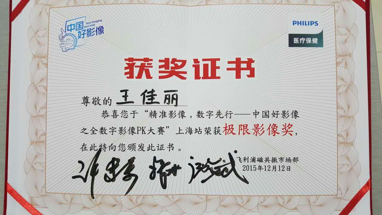 12月12日,在上海举行的华东地区 “精准影像,数字先行-----中国好影像之全数字影像PK大赛”中,我院代表队表现突出,荣获“极限影像奖”。
