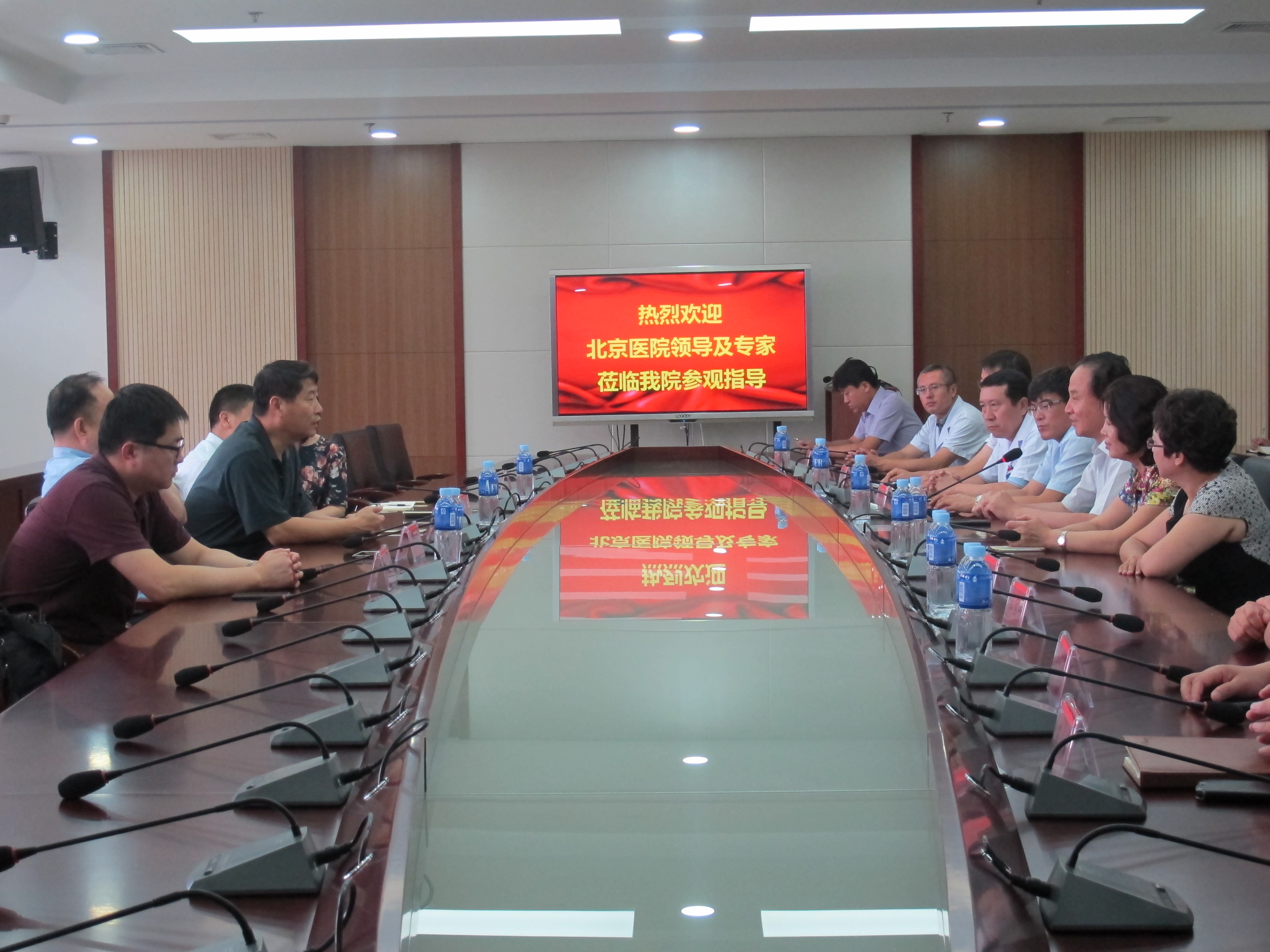 8月23日,北京医院副院长许峰、医务处处长魏亮瑜等一行五人到我院参观指导。我院党委书记、院长周振波偕院领导班子成员热情接待,并在会议室进行了座谈交流。