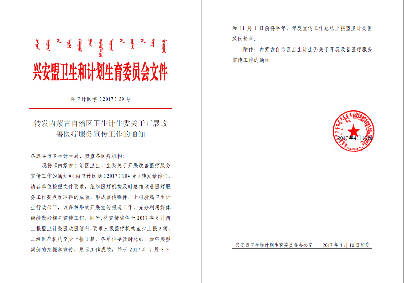 兴安盟卫计委转发内蒙古自治区卫计委关于开展改善医疗服务宣传工作的通知
