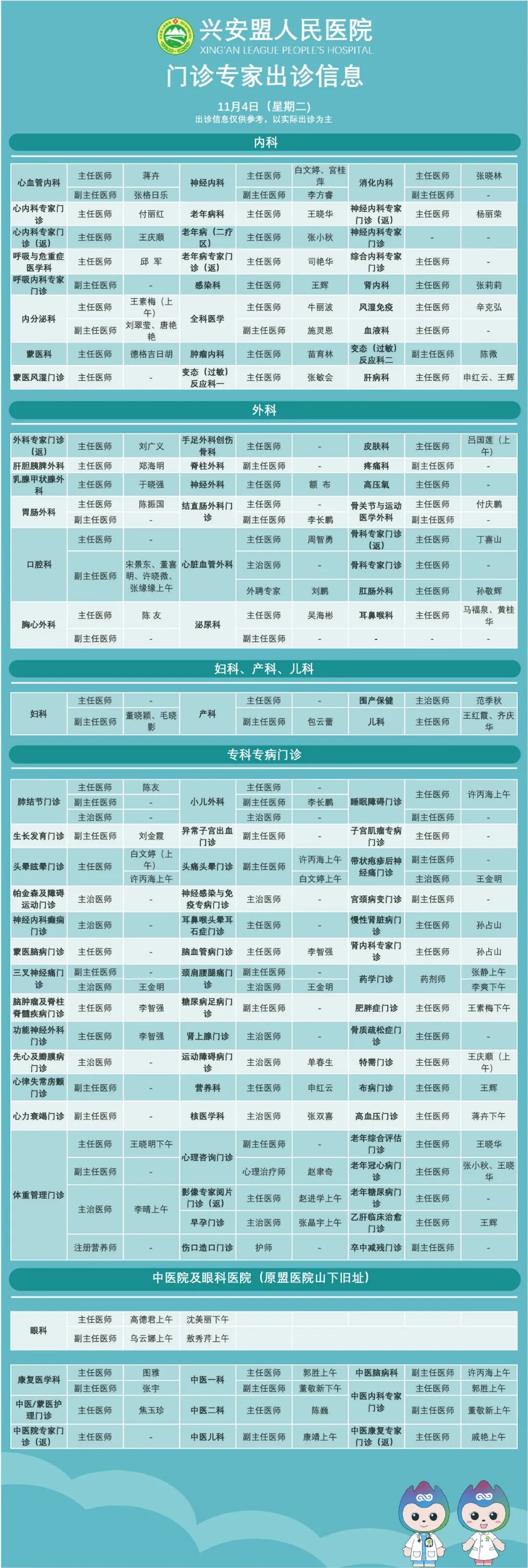 『出诊信息』兴安盟人民医院11月3日-5日出诊信息