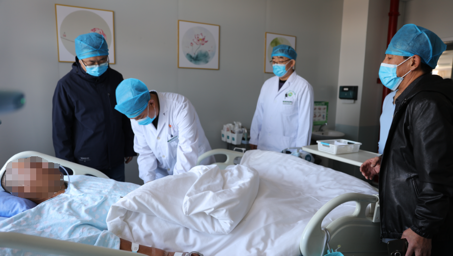 救治告一段落,患者的后续安置问题却成了医护人员的牵挂。考虑到患者无亲属照料、缺乏经济支持,医院主动承担起“临时家人”的责任,多方联系相关救助机构,最终与兴安盟救助站取得对接。接到我院沟通后,兴安盟救助站高度重视,站长尚晓辉、救助接待科科长崔项彦第一时间赶赴医院,与我院医务部负责人和重症医学科ICU主任、护士长详细了解患者病情、护理要点及康复需求,经过充分协商,共同敲定将患者转运至齐齐哈尔市救助服务中心的方案,确保后续照护“不断档”。